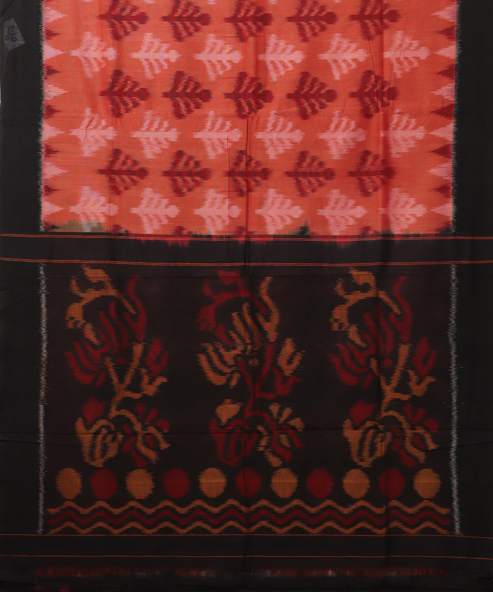 Pochampally Cotton Saree is a unique and beautiful garment known for its intricate patterns and vibrant colors. Originating from the Pochampally town in Telangana, India, these sarees are handwoven using the traditional Ikat technique, where the yarns are tie-dyed before weaving to create stunning, geometric designs. Saree comes with running blouse piece. This saree is certified by Handloom mark of India.