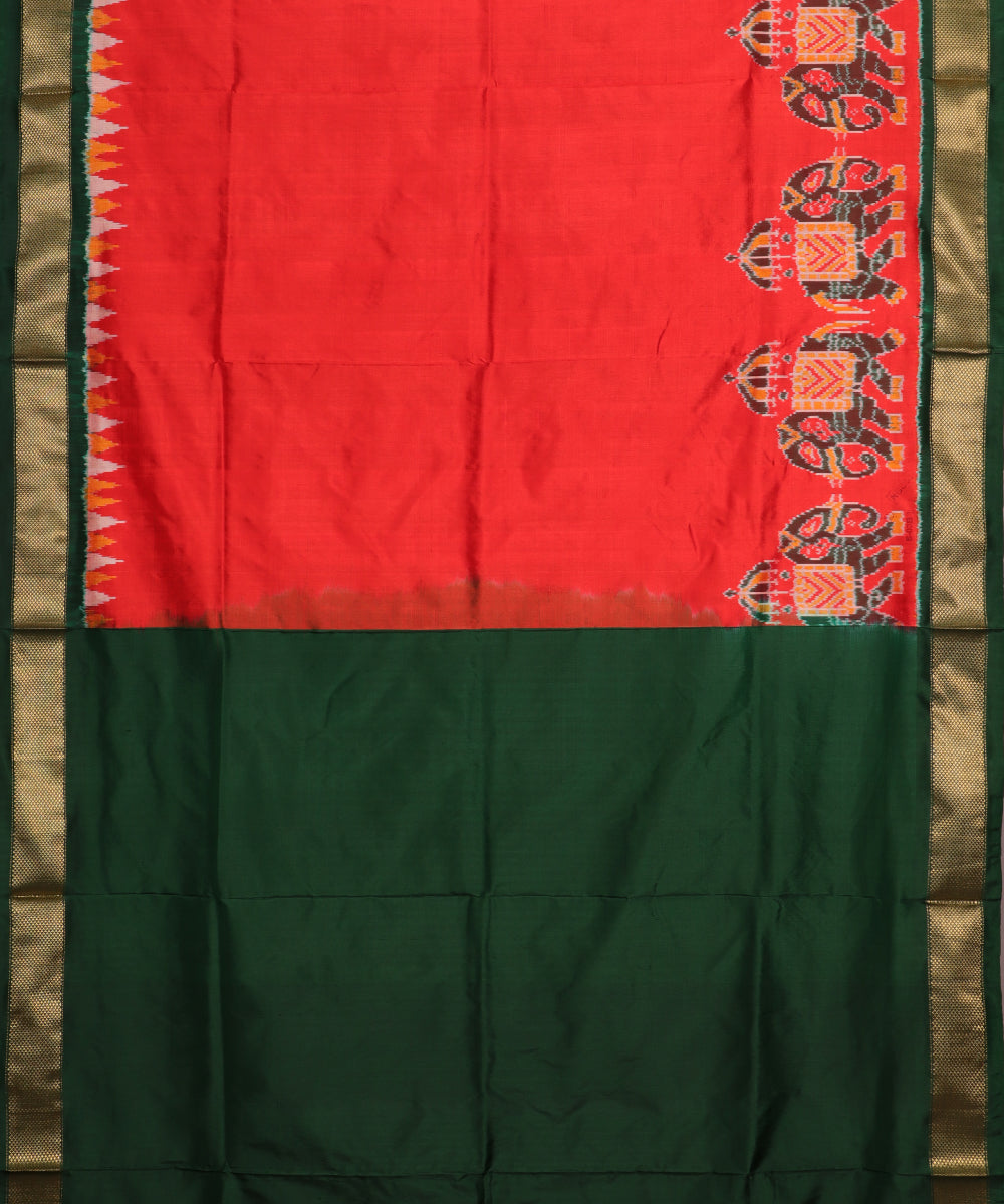 Handloom Pochampally Rajok Sarees are a vibrant and intricate part of India's textile heritage. These sarees are known for their unique Ikat weaving technique, where threads are dyed before weaving to create mesmerizing patterns. The sarees are made from a blend of silk and cotton, giving them a soft and luxurious feel. Originating from the village of Pochampally in the Nalgonda district of Telangana, this weaving tradition dates back centuries. The intricate designs and vibrant colors of Pochampally sarees make them a prized possession, often worn during special occasions and festivals. The art of Pochampally weaving has been passed down through generations, preserving its cultural significance and ensuring that each saree is a unique piece of art