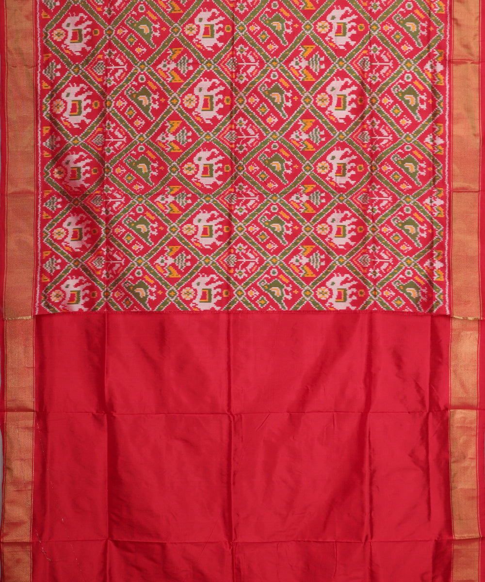 Handloom Pochampally Rajok Sarees are a vibrant and intricate part of India's textile heritage. These sarees are known for their unique Ikat weaving technique, where threads are dyed before weaving to create mesmerizing patterns. The sarees are made from a blend of silk and cotton, giving them a soft and luxurious feel. Originating from the village of Pochampally in the Nalgonda district of Telangana, this weaving tradition dates back centuries. The intricate designs and vibrant colors of Pochampally sarees make them a prized possession, often worn during special occasions and festivals. The art of Pochampally weaving has been passed down through generations, preserving its cultural significance and ensuring that each saree is a unique piece of art