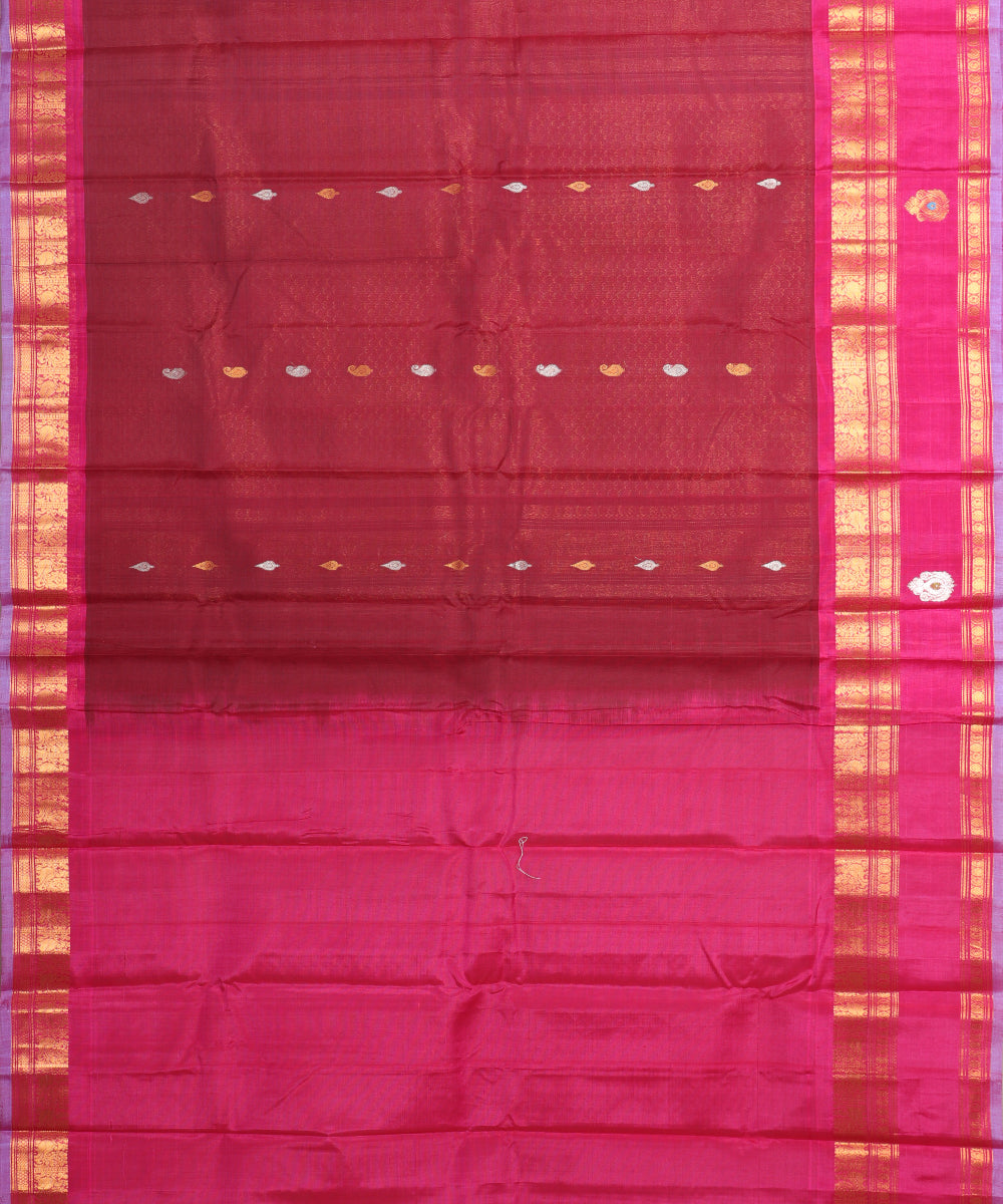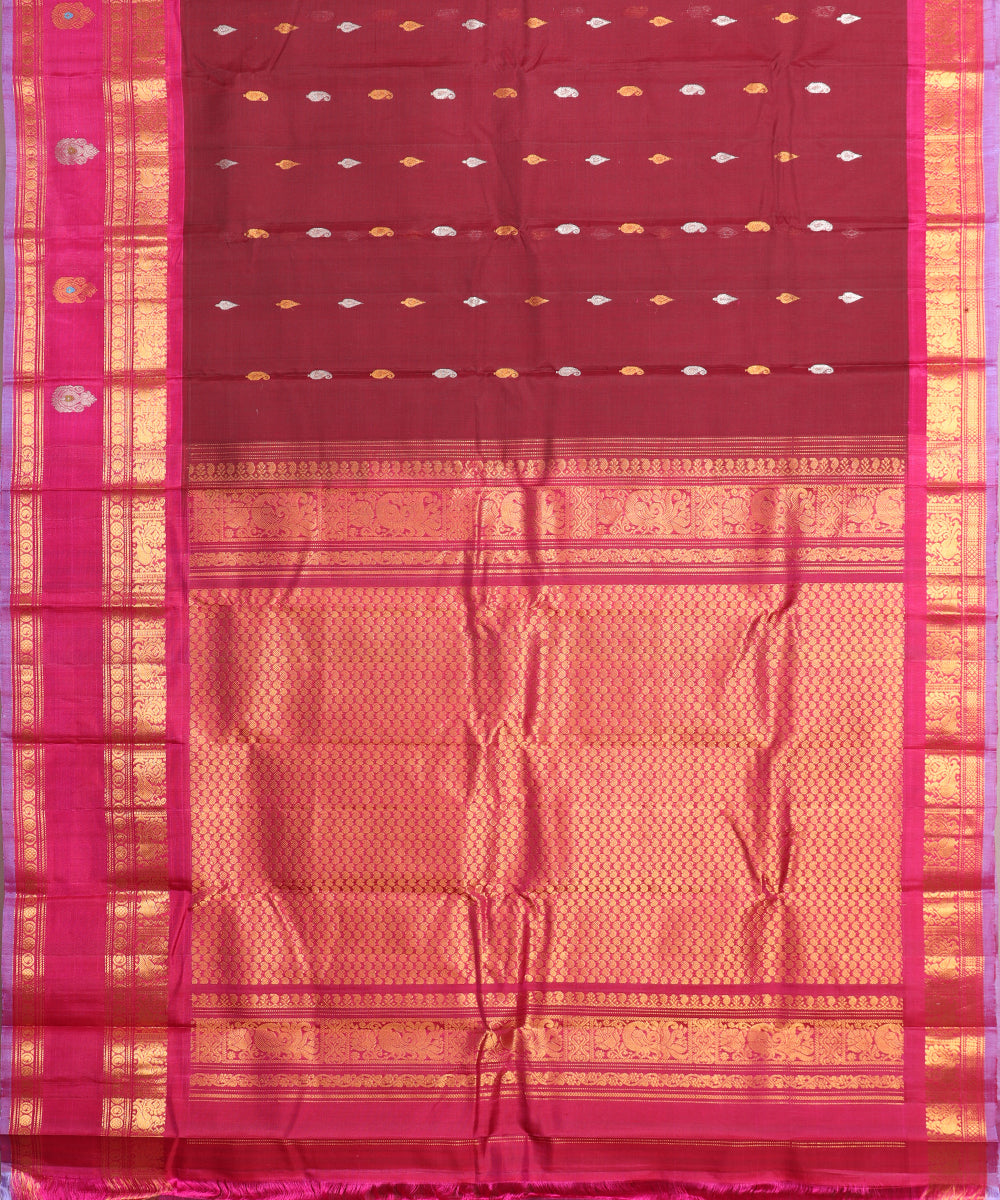 Handloom Gadwal Sico Sarees are beautiful and lightweight, known for their fine weave that can even fit into a matchbox. They are made with a combination of cotton and silk, with the cotton body making them comfortable and the silk borders and pallu adding elegance with intricate gold or silver thread work.