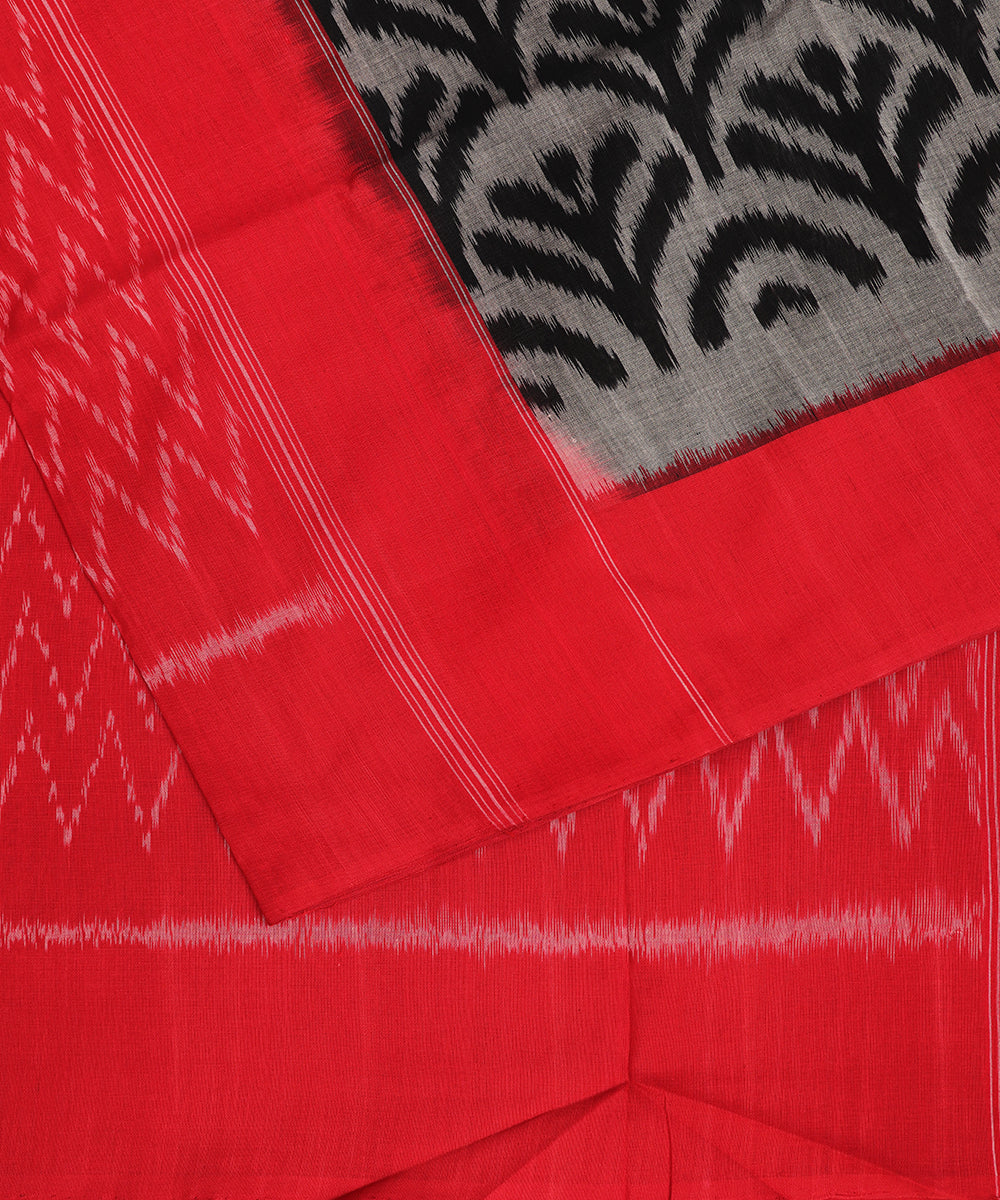 Pochampally Cotton Saree is a unique and beautiful garment known for its intricate patterns and vibrant colors. Originating from the Pochampally town in Telangana, India, these sarees are handwoven using the traditional Ikat technique, where the yarns are tie-dyed before weaving to create stunning, geometric designs. Saree comes with running blouse piece. This saree is certified by Handloom mark of India.